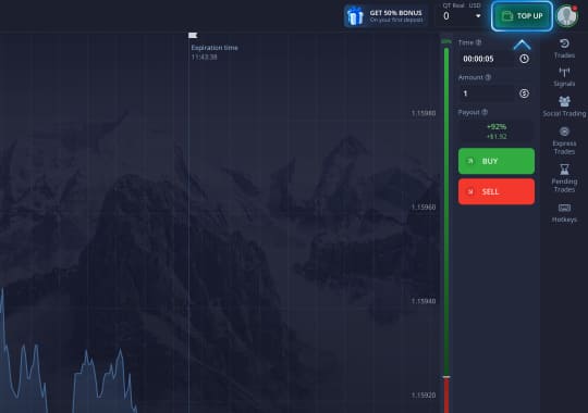 Trading on PO TRADE is easy. You will need just a few things to easily navigate the trading interface. Start by choose the trading type (quick, digital), then select the preferred trading asset (currency, stocks, commodities, etc.) and set the chart type (area, line, candles, bars, heiken ashi).